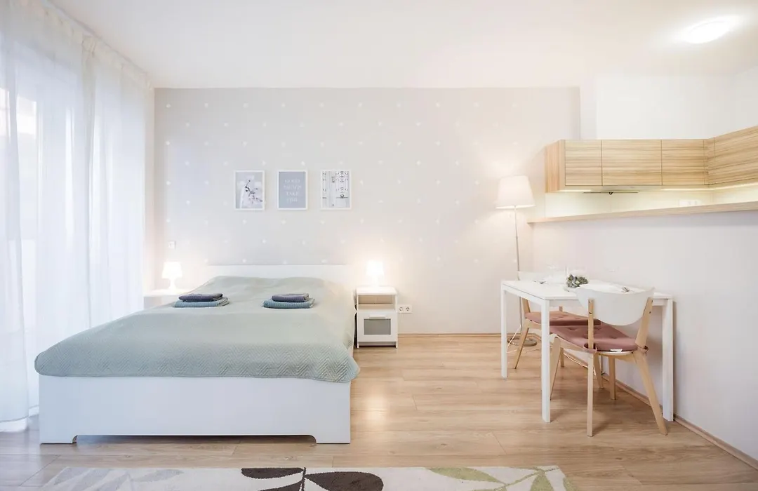 An equipped kitchenette is available in The Chic Crib With Balcony Apartment, offering guests the opportunity to cook their own meals. You will be just near the nearest bus stop - Gogol utca.